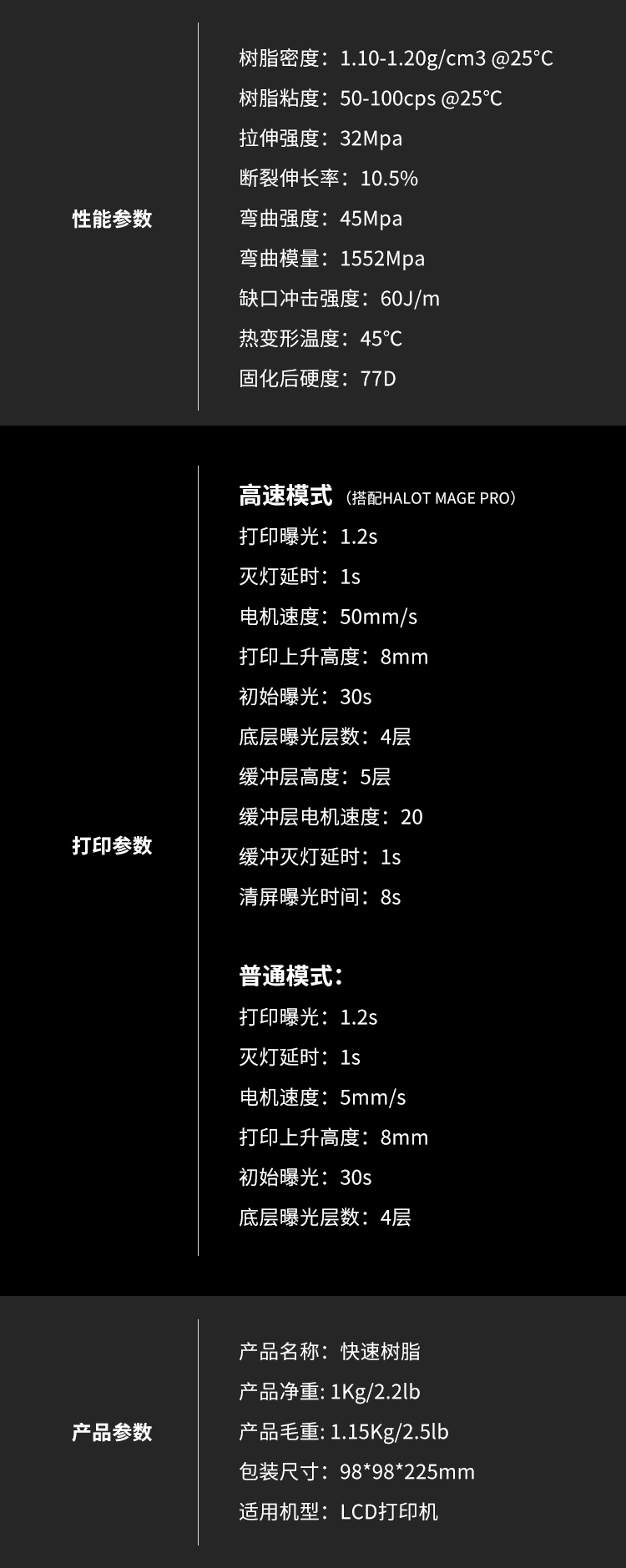快速打印光固化树脂